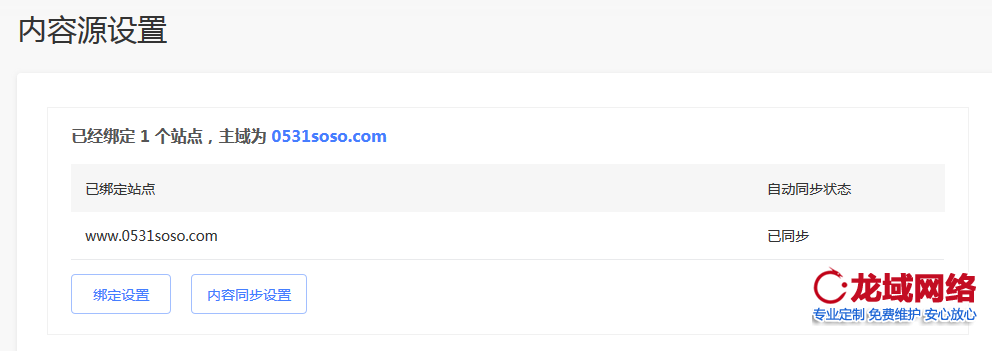 认证通过后,登陆熊账号,点击“搜索资源平台”按钮,如下图1所示,进入熊账号后台,点击左侧菜单中的,内容源设置按钮,如下图2所示,点击绑定设置和内容同步设置按钮,根据系统提示进行操作即可。设置完成后等待同步状态,显示已同步即可,一般同步状态的时间为1-2工作日就能同步完成了。如下图3。