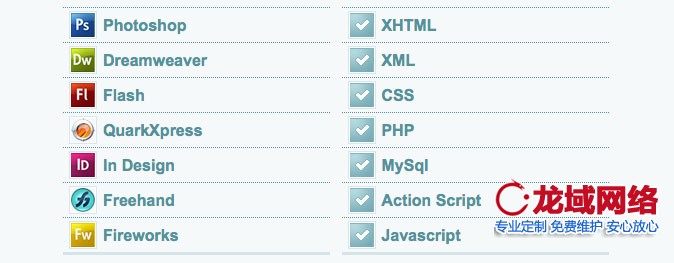 可以通过特殊的设计网站布局,列出我们可以带来的服务内容,而非只是通过文字的形式展示,这样网站访问者可以更容易看到这些信息,例如“熟练使用:Photoshop,PHP,HTML”等。